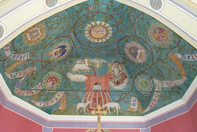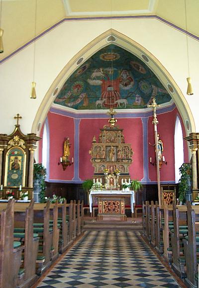 Der Chorraum unserer Pfarrkirche in Binscheid wurde vom überregionalen Malerpastor März um das Jahr 1900 mit sehenswerten Ausmalungen versehen.