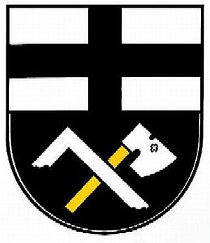 Von Silber über Schwarz geteilt, oben ein durchgehendes schwarzes Kreuz, unten ein silberner Winkel mit silberner, goldgeschäfteter Axt gekreuzt.