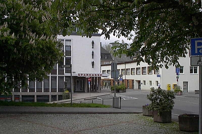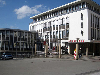 Als Kreishaus, Amtsgericht und Feuerwehrhaus, schließlich als Kreissparkasse genutzt, wurde er 1955 für den Neubau der Kasse abgebrochen, den der Architekt Stang aus Düsseldorf als Stahlbetonskelettkonstruktion ausführen ließ.
