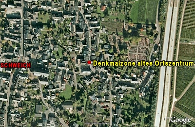 Der Bereich zwischen Schweicher Bach, Brücke, Sommergasse und Hofgartenstraße umschreibt das alte dörfliche Zentrum, der auf der Ostseite der Hofgartenstraße in den ehemals dorfherrschaftlichen Hofbereich übergeht.