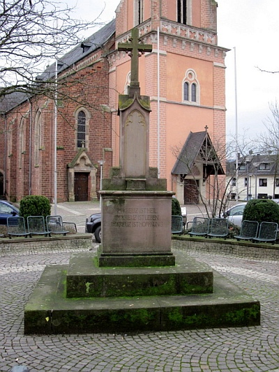 Aus der Trierer Werkstätte Weiland stammendes, neugotisches Sandsteinkreuz auf Altarsockel mit der Bedeutung eines Gemeindekreuzes. [1]
