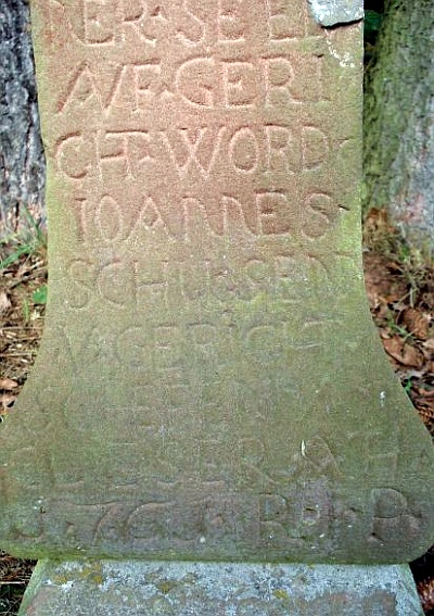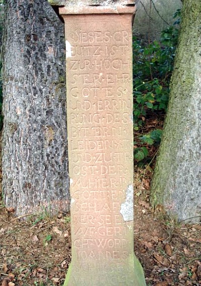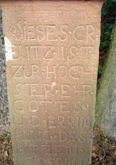Am alten Weg nach Bekond stehendes Unglückskreuz aus Rotsandstein. Am Fuß leicht ausgebauchter hoher Pfeilerschaft, dessen Vorderseite vollständig von der in 22 Zeilen aufgelösten Inschrift bedeckt ist. Hier auch der Stifter und die Datierung JOANNES SCHU SEND U. GERICHTSSCHEFFEN A CLIESERATH 1761 R.J.P. Das Abschlusskreuz ein Balkenkreuz mit dreiviertelplastisch herausgearbeitetem Korpus. [1]