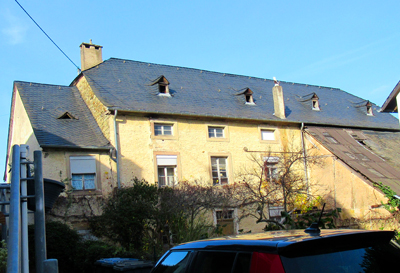 Am Hauseingang 1826 datierter und mit den Erbauerinitialen IPR - ER bezeichneter, verputzter Schieferbruchsteinbau. Der kubische Baukörper mit geändertem Wirtschaftsteil wird vom fünfachsigen Wohnteil dominiert. Die durch gereihte rechteckige Sandsteineinfassungen und durchgehendem Flur gemessen und symmetrisch ausgebildete Fassade erhielt nachträglich eine Putzdekoration. Als horizontale Gliederungsakzente eingesetzt sind der Sockel und der durchfensterte Kniestock, den zusätzlich Dachhäuschen belüften. Die Detailformen haben sich samt gepflasterter Hoffläche im originalen Erscheinungsbild erhalten (sprossengeteilte Fenster, spätklassizistische Türblätter des späten 19. Jahrhunderts). Die Veränderungen sind gering (Rolläden anstelle von Schlagläden), die Schiefereindeckung ist fachgerecht erneuert.