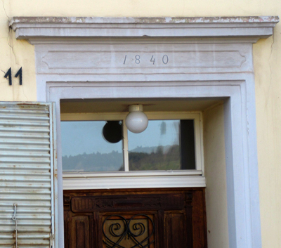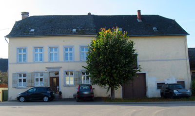 Das 1840 datierte Gebäude ist zeittypisches Beispiel eines ansehnlichen Quereinhauses mit der zurückhaltenden Gliederung aus einheitlich gereihten Elementen. Ortstypische Details sind die hier erhaltenen eisernen Schlagläden und das spätgründerzeitliche Türblatt; im Innern ist die Raumeinteilung ablesbar, die Fenster sind stilgerecht erneuert. [1]