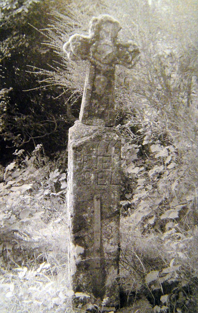 Auf dem geraden Schaft befindet sich neben der Jahreszahl der Name PETER BEL, die Kreuzkontur ist mit einem flachen Band belegt. Der Kreuzstamm trägt unten einen Totenschädel und eine Glockenblüte in flachem Relief, im Balkenschnittpunkt ein von einem Kreis umschlossenes Herz.