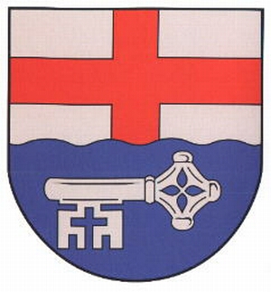 Für die Zugehörigkeit während der Feudalzeit zum Kurfürstentum Trier steht im Schildhaupt das Kurtrierische Kreuz, während das Attribut des Kirchenpatrones Sankt Petrus, der Schlüssel, im unteren Schildteil abgebildet ist.