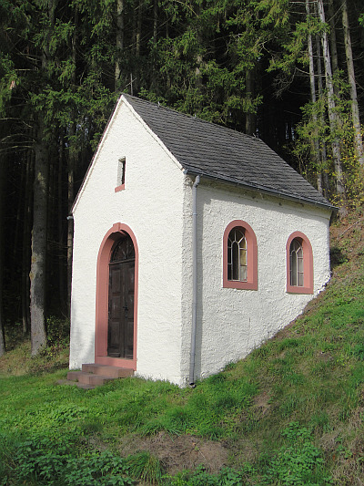 [...] Sie wurde 1953 von der Familie Neises an der Pilgerstraße zum Grab des Apostels Matthias nach Trier erbaut. Seit der Erbauung finden jährlich um den 24. Februar (Matthias) eine Prozession von Schönecken zu dieser Kapelle statt. [1]