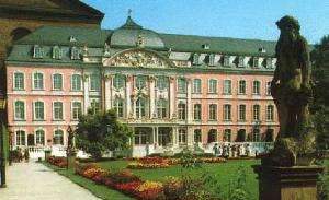 Ehemaliges Kurfürstl. Schloss. (aus der Renaissance-Zeit mit Rokoko-Flügel auf der Südseite).1756 beauftragt Johann Philipp von Walderdorff den Neumann-Schüler Seiz mit der Planung. Bildhauerische Gestaltung durch Ferdinand Tietz.