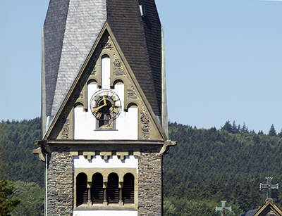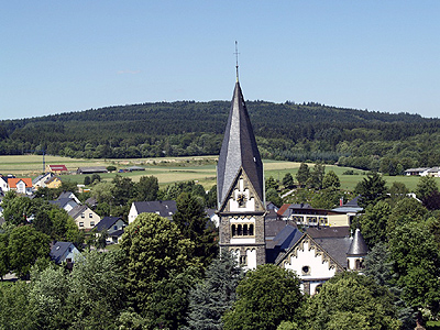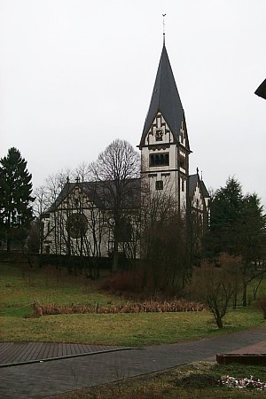 1909 von Ernst Brand, Trier, in spätromanischen Formen errichtet. Die Ausstattung der Erbauungszeit zum Teil erhalten. [2]