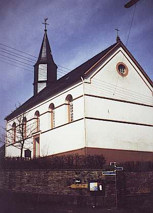 > Evangelische Kirche in Züsch Die Reformation erfaßte 1557 auch die Hintere Grafschaft Sponheim, die sich seit 1550 in dem gemeinschaftlichen Besitz der Herzöge von Pfalz-Simmern (später Pfalz-Zweibrücken) und der Markgrafen von Baden befand. Ihre Vasallen waren die Vögte von Hunolstein. Vogt Johann IV (1556-1579) und seine Nachfolger haben das Dorf Züsch nach der Zerstörung 1504 wieder aufgebaut. Außerdem haben sie in ihrem eigenen Hoheitsgebiet, über das sie die volle Souveränität besaßen, Leute angesiedelt. Hier haben sie auch von ihren Leibeigenen eine Kirche bauen lassen. Es war ein Steinbau, der an der Stelle gestanden hat. an dem die heutige evangelische Kirche steht. An gleicher Stelle wurde 1724 eine kleine bescheidene Kirche gebaut, die bis zum Jahr 1835 bestand.