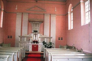 1835-37 nach Entwürfen der Oberbaudeputation Berlin als klassizistischer Saal errichtet. Im Innern eine Balkendecke deren Hängepfosten in Pinienzapfen auslaufen.