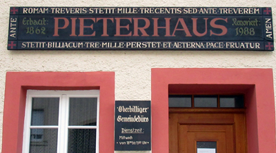 Das Pieterhaus wurde 1862 ursprünglich außerhalb des Ortes - über dem eigentlichen Ortskern von Oberbillig im Pieter vom Schneider Peter Dostert und seinem Sohn Philipp erbaut. Durch die Bautätigkeit in den letzten 100 Jahren ist es mittlerweile in den Ort integriert worden. Das Haus wurde 1983 durch Privatinitiative und mit Unterstützung des Heimat- und Verkehrsvereins vor dem Abbruch gerettet. [1]