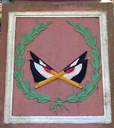 Im unteren Teil sind zwei sich kreuzende schwarz-weiß-rote Fahnen gezeigt. [2]