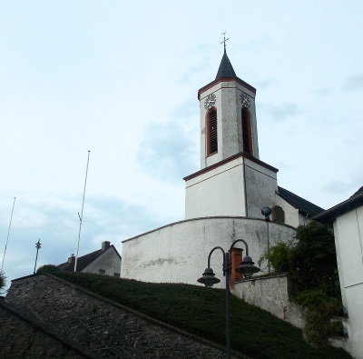 Saalbau, angeblich von 1791, erweitert 1922/24, Turmobergeschoss 1845 erneuert, Helm 1910. [1]