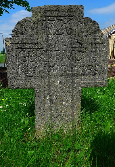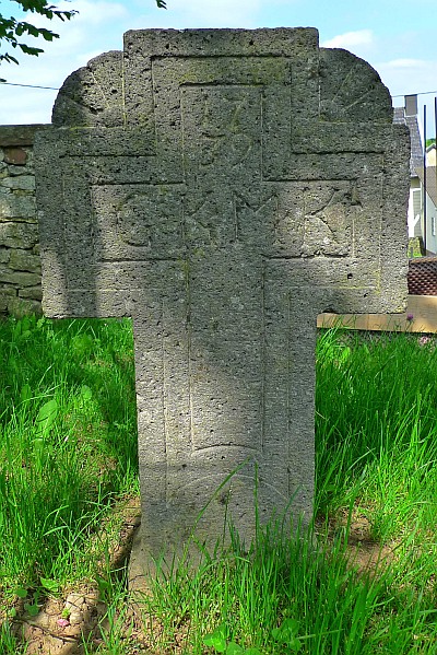 [...] Bei einer Neugestaltung der Friedhofsanlage vor einigen Jahrzehnten wurden neun alte Grabsteine und ein hohes Schaftkreuz wieder neu aufgestellt. Bis auf zwei Grabkreuze sind sie alle gut erhalten und die Inschriften gut lesbar.