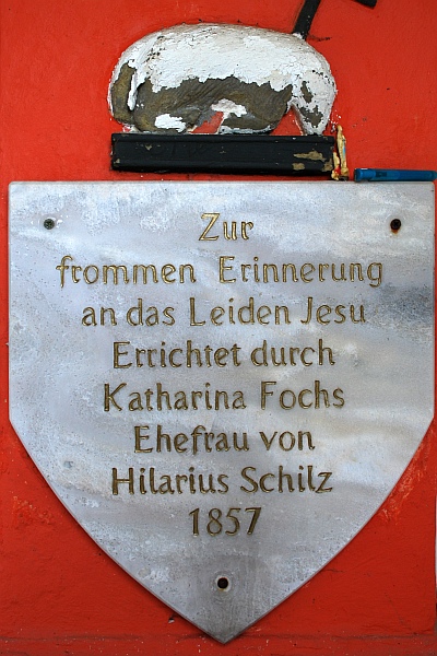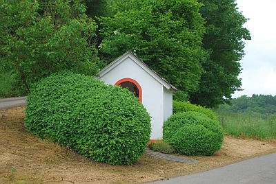 Kleine Spitzgiebelkapelle mit Rundbogeneingang und Metallkreuz über dem Eingang. Innen entdeckt der Besucher einen Steinaltar mit einer wappenförmigen Inschrifttafel, die "Kath. Fochs Ehefrau von Hilarius Schiltz 1857" als Stifter ausweist. Über der Inschrift ein Lamm Gottes mit Fähnchen wird der Altar nach oben durch ein Metallkreuz abgeschlossen. Es kann als Totengedächtniskreuz angesehen werden, mit dem Frau Fochs an ihren zwei Jahre zuvor verstorbenen Ehemann erinnerte. Die letzten Restaurierungen fanden 1997, 2001 (Abdeckung der Inschrifttafel mit einer Marmorplatte) und 2008 statt. [2]