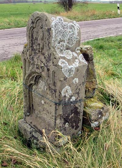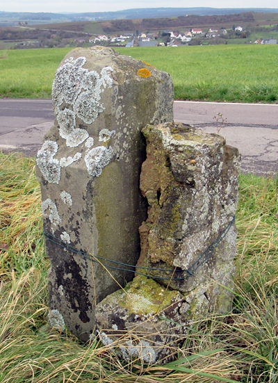 Südöstlich von Helfant. Beschädigtes, von einer Aufmauerung unterfangenes neugotisches Sandsteinpfeilerkreuz, der Kreuzaufsatz fehlt. Am Sockelrelief die göttlichen Tugenden (Herz, Kreuz, Anker), darüber in Blende die Inschrifttafel (Eheleute Philipp Kieffer und Marg. Scheuer, erneuert 1878) und darüber wieder in Paßblende Reliefdarstellung des heiligen Donatus. [1]