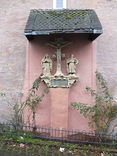 Die Kreuzigung unter Schutzdach bringt ein moselländisches Element zur Geltung. [1]