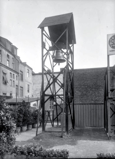 Am Giebel das nach dem Vorbild des Hauszeichen Staden 124 gearbeitete Berufszeichen des Firmengründers Urbanus Mabilon, eine Glocke und ein Geschützrohr. Rückwärtig anschließend ältere Werkhalle, ausweislich der Datierung 1764 am eingemauerten Wappenstein vor der Niederlassung der Glockengießerei entstanden. Das Wappen mit Pferdekopf, Zier- und Bandornament sowie die Initialen IIR nicht gedeutet. In den Werkhallen dokumentiert sich die Tradition der um 1772 in Saarburg seßhaft gewordenen Glockengießerfamilie Mabilon. Sie bekam damals den Platz der heutigen Glockengießerei zur Errichtung des Schmelzofens am Garten vor der untersten Stadtpforte von der Stadt zugewiesen. [1]