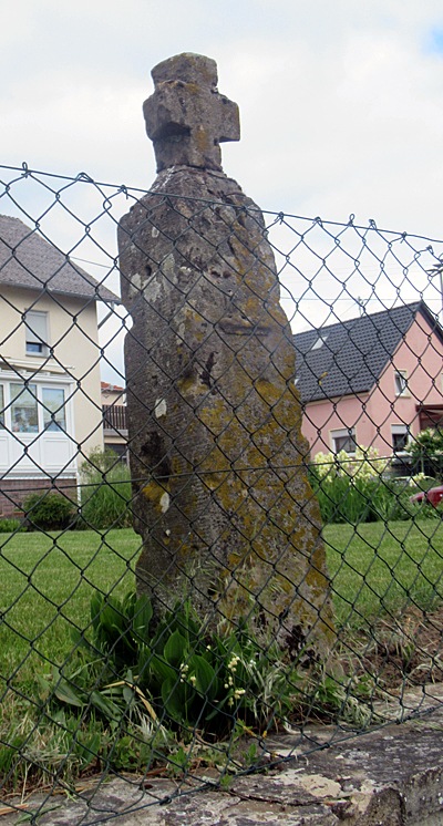 Am Beginn des Messewegs im Dorf erhebt sich ein beschädigtes Schaftkreuz aus grauem Sandstein, dessen Stifterinschrift, unter dem Relief einer Gewandfigur, 1620 als Aufstellungsjahr angibt. Das Abschlusskreuz des ältesten Monuments von Ernzen ist ursprünglich nicht zugehörig. [1]