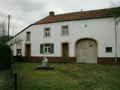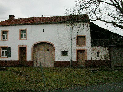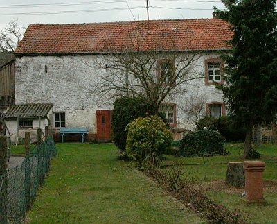 Kleingehöft samt altgepflastertem Hofraum und Brunnen, um 1850. Das Quereinhaus ein verputzter Schieferbruchsteinbau unter Ziegeldach. Artgemäß der zweiachsige Wohnteil und die Ökonomie mit gemauertem korbbogigem Tor. Signifikant die beidseitig angefügten Ställe unter Pultdächern, von denen einer nachträglich zu Wohnzwecken umgewandelt wurde. Die Detailformen (Tür, Fenster) aus dem frühen 20. Jahrhundert.