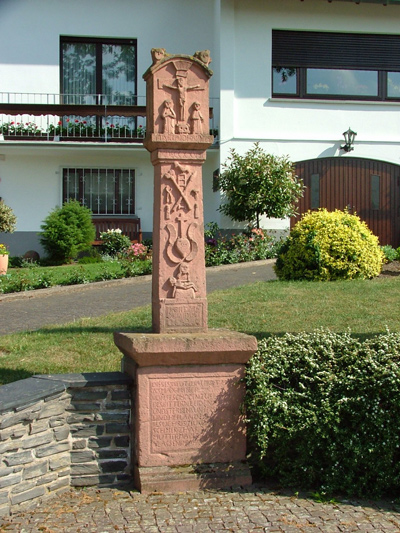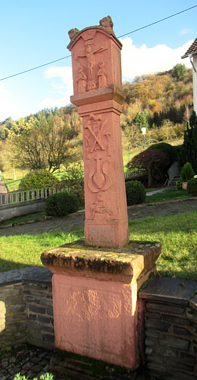 Kreuzbildstock an der Kreuzung von Bahnhof-, Herrenberg -und Weinbergstraße, am Fuße des Weinberges. Über altarförmigem Sockel Stifterinschrift (Mathias Maxminer). In der Art der luxemburgischen Bildstöcke.