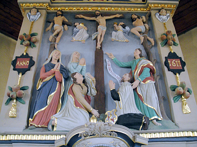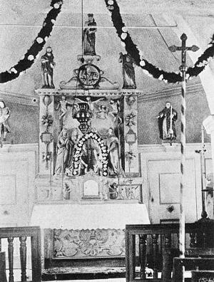 Anfang 19. Jahrhundert. Steinerner Altaraufsatz von 1611 aus der Pfarrkirche Waxweiler. [2]