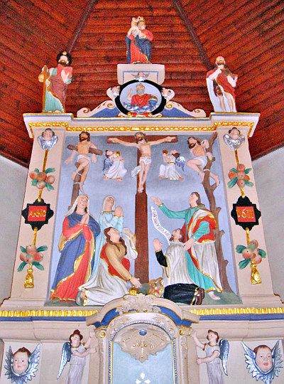 Pfarrer Bormanns Karte des Dorfes von 1832 zeigt eine Kapelle, die der heutigen genau gegenüber auf dem Pesch stand. Das jetzige Gotteshaus wurde wohl gegen Ende des 19, Jahrhunderts gebaut, um den schönen Altar aufzunehmen. Den Hochaltar ließ der Pfarrer zu Waxweiler, Daniel Culnerus, im Jahr 1611 in seiner Pfarrei errichten. Von dort kam er zwischen 1768-71 in die Pfarrkirche nach Ammeldingen, wegen eines Neubaus der Kirche inkl. neuer Ausstattung in Waxweiler. Der Altar wurde für 100 Taler von dort nach Reipeldingen verkauft. [1]