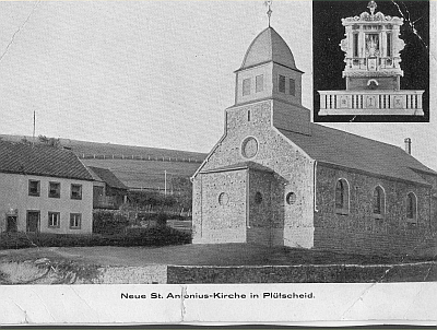 Eine Kirche in Plütscheid ist seit 1463 bezeugt. Sie stand in der Mitte des Dorfes bei der alten Schule. Im 16. Jahrhundert wird der heilige Servatius als Kirchenpatron genannt. Ein Jahrhundert später verdrängte ihn der heilige Hubertus und noch ein Jahrhundert danach der heilige Antonius der Einsiedler. 1930 riss man das alte Gotteshaus ab, ein neues war bereits an seinem heutigen Standort in den Jahren 1928/29 erbaut und am 25. November 1929 eingeweiht worden. Plütscheid gehörte bis um 1800 herum zum Pfarrbezirk Lambertsberg der Pfarrei Waxweiler, bis man es der Pfarrei Lasel angliederte. 1933 erfolgte die Umpfarrung in die neue Vikarie Lambertsberg der Pfarrei Waxweiler, die 1947 zur eigenständigen Pfarrei St. Lambertus erhoben wurde, mit der Plütscheider Kirche als einzige Filiale.