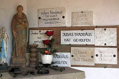 Fährt man von der Ortsmitte in Richtung Hasenberg und überquert die Eisenbahn, so sieht man die Kapelle unter Bäumen, im Hang gelegen. Der Bau der Kapelle geht auf ein Gelübde der Familie Hauer zurück. Man versprach, wenn man die Bombardierung und den 2. Weltkrieg überleben würde, wolle man eine Kapelle bauen. Baubeginn war Anfang der 50er Jahre. [1]
