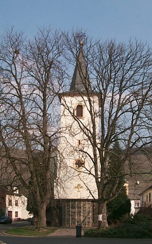 1873-74 von Architekt Arendt, Luxemburg. Aus der alten Kirche zwei Steinaltäre (1620 und 1624) von Manternach, dem Schüler des Hans Ruprecht Hofmann. [1]