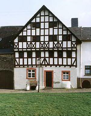 Wohnhaus Nr. 30. Spätgotisches Fachwerkhaus von 1558. Das ganz in geraden Hölzern gehaltene Fachwerk gehört zu den wenigen, die noch die ganz gotische Holzkonstruktion vermitteln. [1]