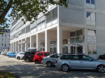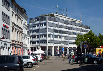 Der siebengeschossiger Stahlbeton-Skelettbau gegenüber vom Hauptbahnhof ersetzt das 1897 erbaute und 1956 abgerissene Hotels Reichshof.