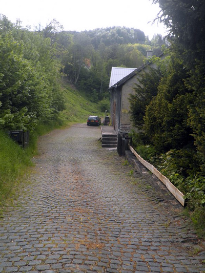 Mutter buk in Anfang der 30er Jahren unser Brot immer selbst. Alle zwei Wochen 12 große Laibe. Der Backofen in unserem Gerolsteiner Haus war im Keller eingebaut. Das Mehl hierzu holten wir von der Pinten-Mühle in Pelm. Wieder war es soweit, wir Kinder mussten mit dem Handwagen nach Pelm, um einen halben Zentner Weißmehl und ebensoviel Roggenmehl einzukaufen. Dafür gab Mutter meinem älteren Bruder sieben Mark mit. Bis vor Pelm mussten wir den Handwagen ziehen, dann kam das Beste, der große Spaß, den wir auf jeder Mühlenfahrt genossen und der fing genau da an, wo es vor Pelm bergab geht. Dort setzten wir uns in den Handwagen, Peter saß vorn, lenkte mit ausgestreckten Beinen die Deichsel, ich saß anders herum hinten, wo ich zur Not mit den Füßen über dem Boden bremsen konnte. Heißa ging es bergab. Wir bekamen ein ziemliches Tempo, sahen schon unten links Richtung Pinten-Mühle die scharfe Kurve. Die müssen wir packen! Die Räder hoben sich auf der rechten Seite. Fast wären wir umgekippt, hätte ich mich nicht nach dieser Seite gelehnt und gegen gehalten. "Gut reagiert!" rief Peter mir sein Lob zu, dann knirschten die eisenbereiften Räder auch schon über den Pflasterweg zur Pinten-Mühle. Herr Pinten, in seiner weißen Arbeitskluft stand and der Tür und hob mahnend den Zeigefinger, als er uns kommen sah. Er kannte seit langem den gefährlichen Kinderspaß. Er wog das Mehl ab und lud es auf den Handwagen. Als es ans Bezahlen ging, suchte Peter vergeblich in seinen Hosentaschen. Nichts! Das Geld war weg. Es war wohl bei der scharfen Kurve ins dichte Gebüsch am Hang geflogen. Unauffindbar. Was war zu machen? Der Müller kannte unsere Eltern gut, er wusste, dass sie bezahlten, also ließ er uns mit dem Mehl nach Hause fahren.