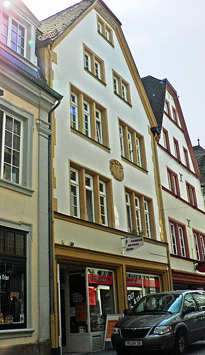 [...] Haus Nr. 21, "Zu den drei Reichskronen", ist [dagegen] ein Musterbeispiel verfälschender Stadtbildpflege. Das dem "Ortsgesetz betreffend den Schutz gegen die Verunstaltung der Stadt Trier von 1908" unterstellte Haus erhielt um 1927 neue, als ursprüngliche Fensterform vermutete, dreiteilige Stockgewände. Schließlich wurde das Gebäude nach Teilzerstörung 1944 durch einen mit historisierenden Gewänden befensterten und mit einem Krüppelwalm ausgestatteten Giebel den spätgotischen Nachbarhäusern angepaßt.