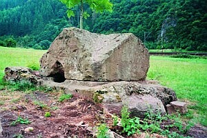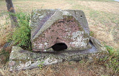 Auf einer Wiese findet man die Spuren eines römischen Begräbnisplatzes.Man sieht einen Sandsteinblock in dem eine Öffnung eingetieft worden ist, zur Aufnahme von Bestattungen.Die vier Kanten sind abgeschlagen, bis über die Mitte ausgerundet und scheinen so der Oberfläche die Form eines Kreuzes zu geben.Der Stein auf dem sich heute nur noch eine schwer lesbarer Schrift befindet ist mit Rinnen versehen.