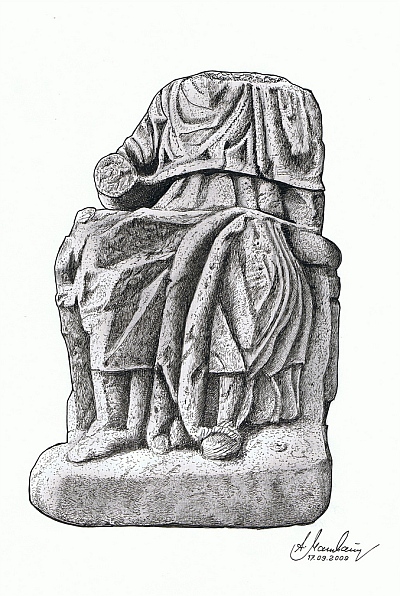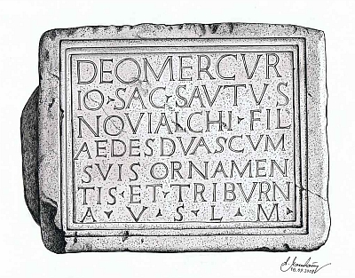 Beiderseits der Landstraße wurden im 19. und frühen 20. Jahrhunderts Grundmauern römischer Gebäude beobachtet sowie zahlreiche Münzen aufgelesen. Es liegen jedoch keine Beobachtungen zur Architektur der Tempelanlage vor. Steinhausen rekonstruiert aufgrund der Topographie und der alten Berichte eine Reihe von Tempeln, die beiderseits der römischen Fernstraße standen. An Steindenkmälern sind eine fragmentarische Fortunastatue, die Statue eines sitzenden Jupiter antoninischer Zeit und eine Bauinschrift für Merkur gefunden worden. Aus der Inschrift geht hervor, daß Sautus, Sohn des Novialchus, zwei Tempel mit Schmuck und Sockeln für Götterbilder dem Gott Merkur geweiht hat. Trotz des schlechten Erhaltungs- bzw. Forschungsstandes muß somit ein größerer Tempelbezirk angenommen werden.