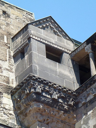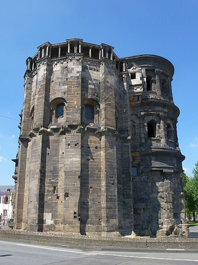 Auf Befehl Napoleons und durch die preußische Regierung 1804-27 nahezu alle Teile der nachrömischen Um- und Anbauten der Porta Nigra beseitigt, als einziger mittelalterlicher Anbau blieb der wohl 1148-53 errichtete Chorbau weitgehend erhalten, ein steil proportionierter Quaderbau mit polygonaler Apsis, dessen Vorbild im lothringischen Kunstraum zu finden ist. [1]