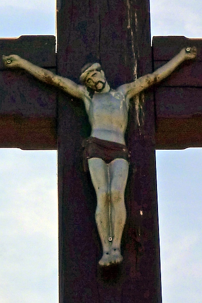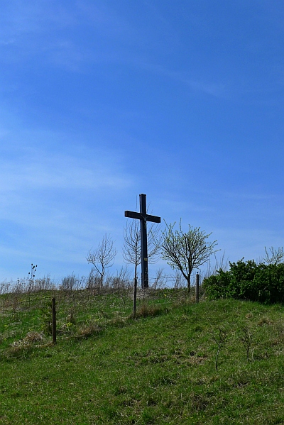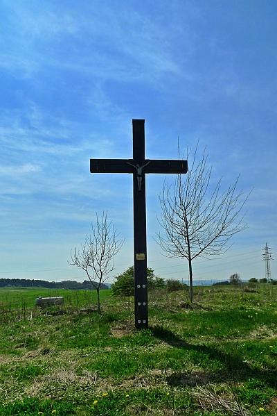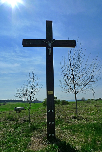 An der Landstraße 10 nach Hillesheim steht weit und von allen Himmelsrichtungen sichtbar ein großes Holzkreuz.