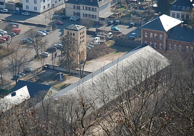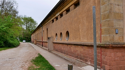 Großer eingeschossiger Rechteckbau auf Sandsteinquadersockel mit flachem Satteldach, 1888 als Exerzierhalle errichtet, 1934 Umbau zur Kirche, Architekt F. Kleis, erneuter Umbau 1973 und Kampanile 1990/91, Architekt Karl Peter Böhr, Buntglasfenster 1952 nach Entwürfen von R. Schilling. [1]