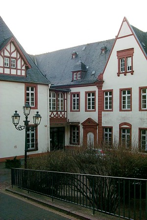Das in verschiedenen Bauphasen gewachsene und umgestaltete Anwesen gründet in einem Burgmannenhaus, wohl dem des 1360 und 1366 genannten Amtmannes Peter von der Leyen. Unter Einbeziehung eines im Keller nachgewiesenen Vorgängerbaus errichtete Johann von Warsberg den Familiensitz zwischen 1593 und 1599 (Grundstein und Gewölbeschlußstein, heute an anderer Stelle eingemauert).