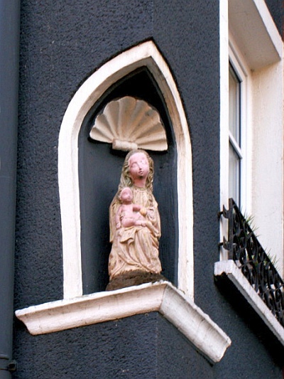 An der Ecke eine Muschelnische mit Madonna. Zugehörig ist heute der in das Erdgeschoß von Nr. 17 hineinreichende einachsige Anteil. Das hier im Sturz 1748 datierte und mit PH IR (Peter Haupt, Johann Reinert) bezeichnete Portal jetzt zu einem Fenster vermauert. Der Zugang wird als früherer Durchlaß einer Feuergasse gedeutet, die in die Hewerstraße führte.
