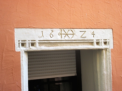 Rechteckige Sandsteinrahmung mit schlichter Profilierung und spätgotischer Stäbung im Sturz. Hier 1624 datiert und durch das Berufszeichen als Schifferhaus bezeichnet. Linkes Gewände nicht zugehörig. [1]