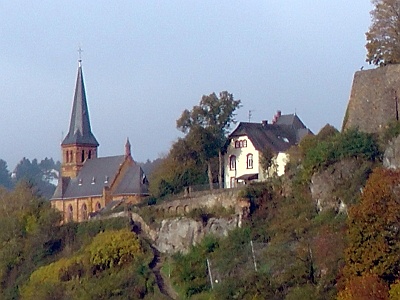 Am Standort des ehemaligen Amtshauses unterhalb der Burg und innerhalb des ummauerten Felsgrates stehende Baugruppe aus Kirche und Pfarrhaus. 1892/93 nach Plänen des Kreisbauinspektors Natorp aus Oldeslohe erbaut. Nach Teilzerstörung 1944 wiederhergestellt.