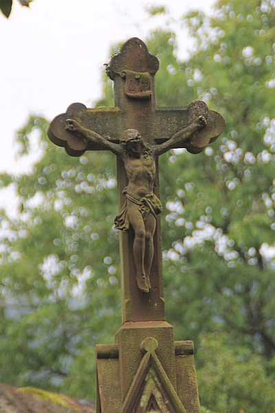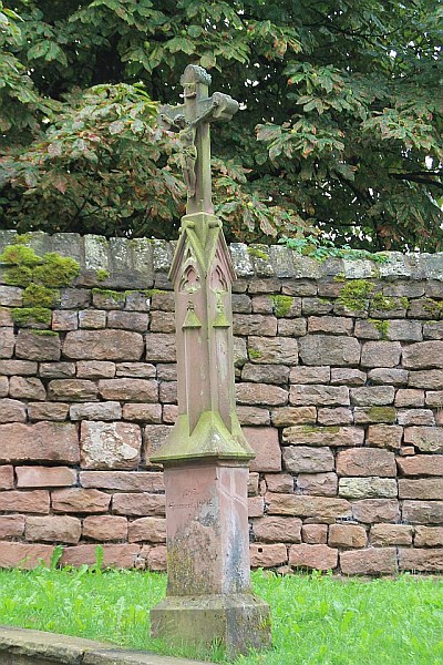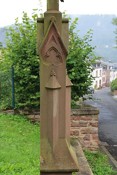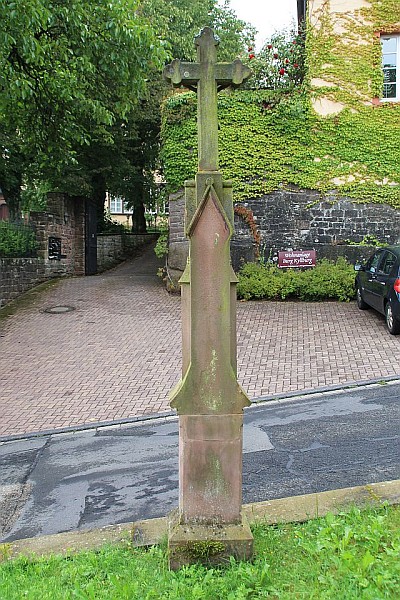 Qualitätvolles, neugotisches Schaftkreuz von 1904, der Inschrift zufolge anstelle eines Vorgängers von 1793. Der Schaft über hohem Sockel in Form einer gotischen Fiale, aus der das abschließende Kleeblattkreuz mit dem fein gearbeiteten Korpus hervorwächst. [1]