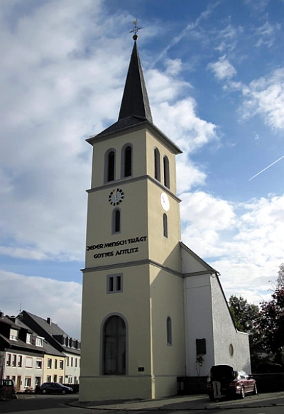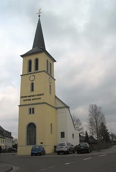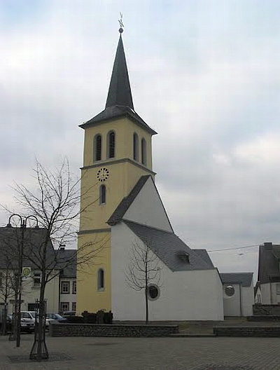 Alte katholische Pfarrkirche Sankt Paulus Bekehrung; von dem 1974 abgerissenen Kirchenbau erhalten der 1870 errichtete Westturm als Gefallenengedächtnishalle; zugehörig Platz der alten Kirche und ehemaliger Kirchhof mit Kreuzigungsgruppe (heute Kriegerdenkmal). [1]