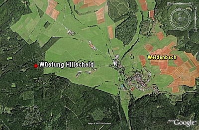 Die bei W. Janssen, Studien zur Wüstungsfrage im fränkischen Altsiedelland zwischen Rhein, Mosel und Eifelnordrand (Köln/Bo 1975), Bd. II, 244, Kat. DAU 90 genannte Wüstung "Hillscheid" westlich Weidenbach konnte von Herrn H. Schmitz, Gerolstein, und M. Heinen, Bleckhausen, lokalisiert werden. Im heutigen Fichtenwald zeichnen sich auf mindestens 100 m Ausdehnung neben flachen Wegetrassen zahlreiche leicht erhöhte Hausstandorte ab, aus denen stellenweise kleinstückige Bruchsteine herausragen. Im übrigen zeichnet sich das Gelände durch ausgesprochen dunklen, humosen, holzkohlehaltigen Boden aus, der eine ungewöhnliche Maulwurfsaktivität begünstigt, so daß eine Serie kleinstückiger Scherben und Brandlehmbröckchen aufgelesen werden konnte. Die Keramik reicht mit verschiedener Grauware, braun engobiertem Steinzeug und Frühsteinzeug von 13. Bis zum 15. Jahrhundert. so daß auch eine schriftliche Erwähnung von 1238 in den abgedeckten Zeitraum fällt. Diese Wüstung kann als hervorragendes obertägiges Bodendenkmal gelten. Verbleib: RLMT, EV 2001, 118.