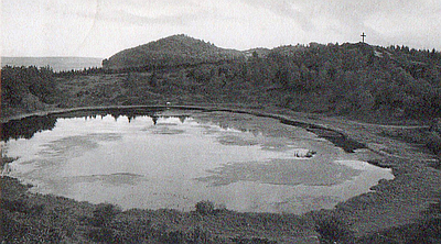 "Gott schütze unsere Heimat" steht ab sofort wieder [2012 Red.] gut lesbar auf dem Gipfel des Windsbornkraters am Mosenberg bei Bettenfeld.