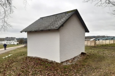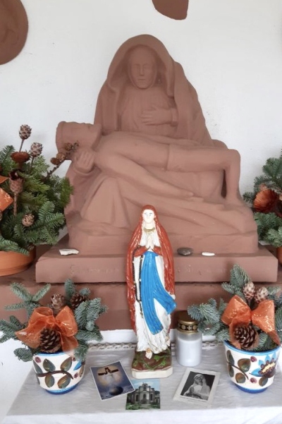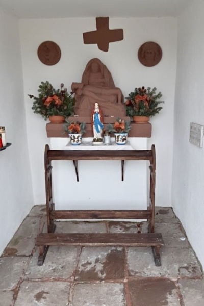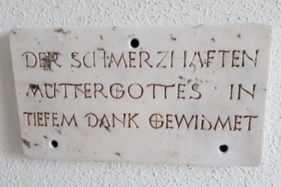 Das Innere ist mit einem Relief der Schmerzhaften Muttergottes geschmückt. Eine an der Vorderseite angebrachte Sandsteintafel zeigt die Initialen M. G. und das Erbauungsdatum 1849. [1]
