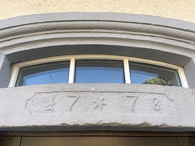 Weit zurückliegendes, straßenparalleles Wohnhaus, zu dem ursprünglich ein im mittleren 19. Jahrhundert abgetrenntes und zum Quereinhaus umgebautes Wirtschaftsgebäude auf dem heutigen Grundstück Nr. 5 gehörte. Nach der Hofteilung wurde die alte, segmentbogige Haustür mit integriertem Oberlicht und der Jahreszahl 1778 im Sturz vermauert und durch einen neuen Eingang auf der Hausrückseite ersetzt. Spärlich verteilte kleine Segmentbogenfenster. [1]